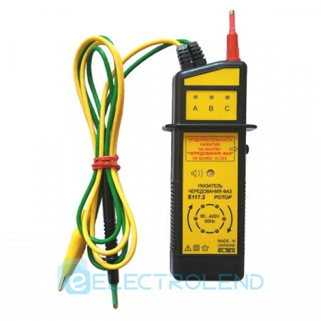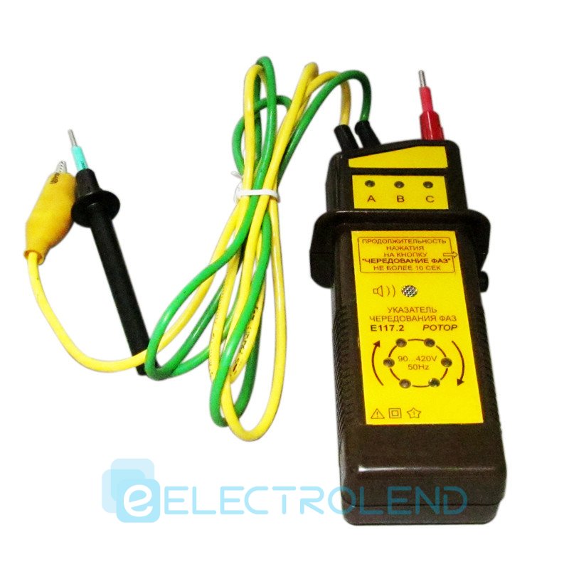 Е117.2 ("РОТОР") - найбільш досконалий фазоуказатель, в якому, завдяки застосуванню мікроконтролера, імітується "обертання диска". Така індикація має багаторічний позитивний досвід. У зазначеній моделі вперше оптичні сигнали чергування фаз супроводжуються звуковими сигналами. Це поєднання створює комфортні умови при вимірюванні, попереджає помилки оператора і дає більш повну інформацію про контрольованої ланцюга.