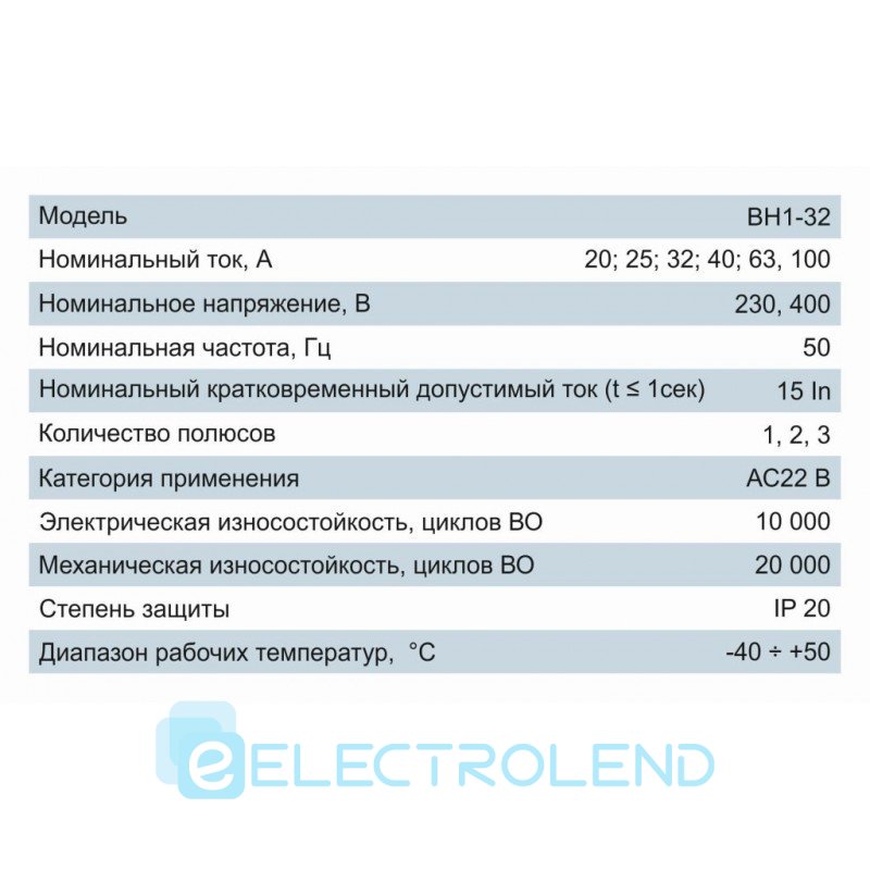Вимикач навантаження ВН 1-32 2Р 63A 230B Electro