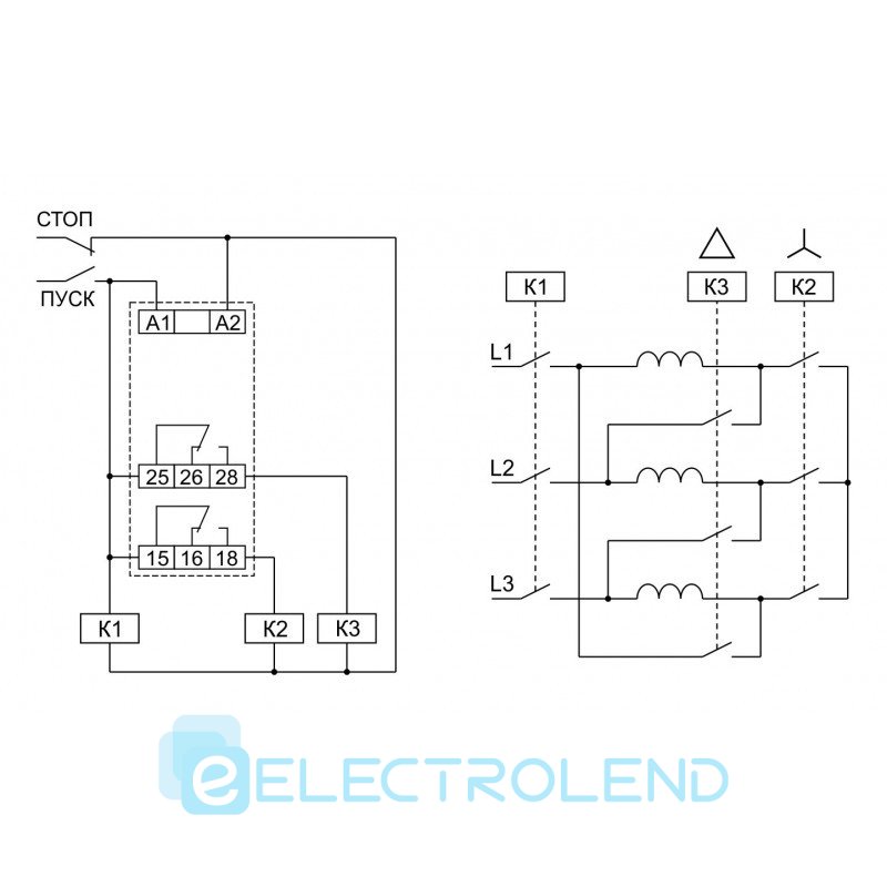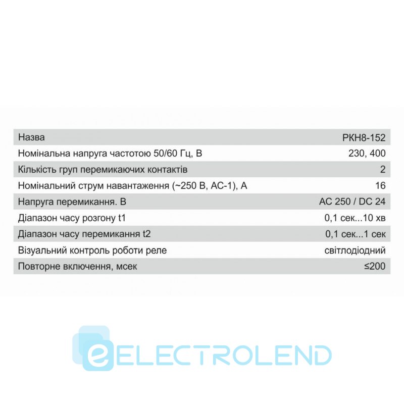 Реле затримки включення зірка-трикутник РКН8-152, 230В, 16А, рег. часу * зоря * 10-100%, час 0.1-600сек., Груп 2 Electro