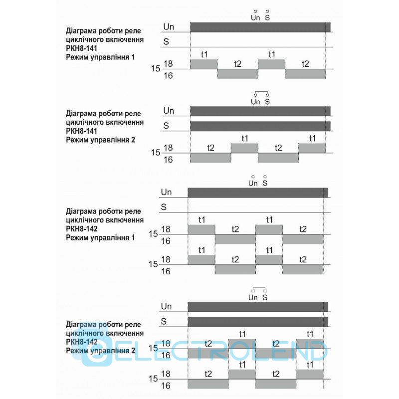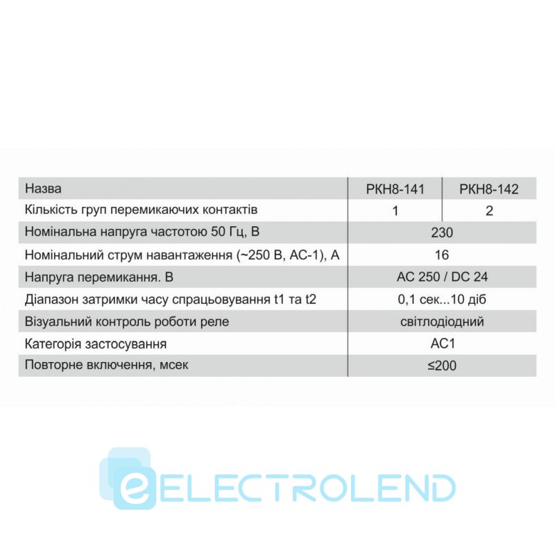 Реле циклічної включення РКН8-142, 230В, 16А, уставка регулювання часу Т1, Т2, груп конт 2, Electro
