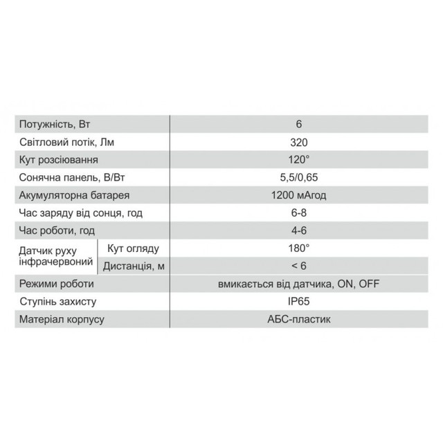 Світильник на сонячній бататарее TS 6Вт, IP65, 320Lm, 1200 mAh, датчик руху до 3-6m, кут 180, Electro