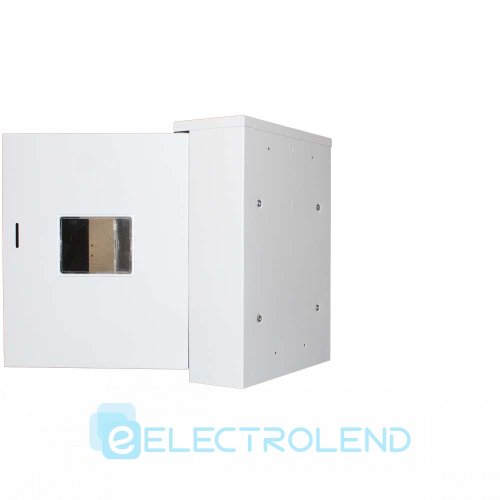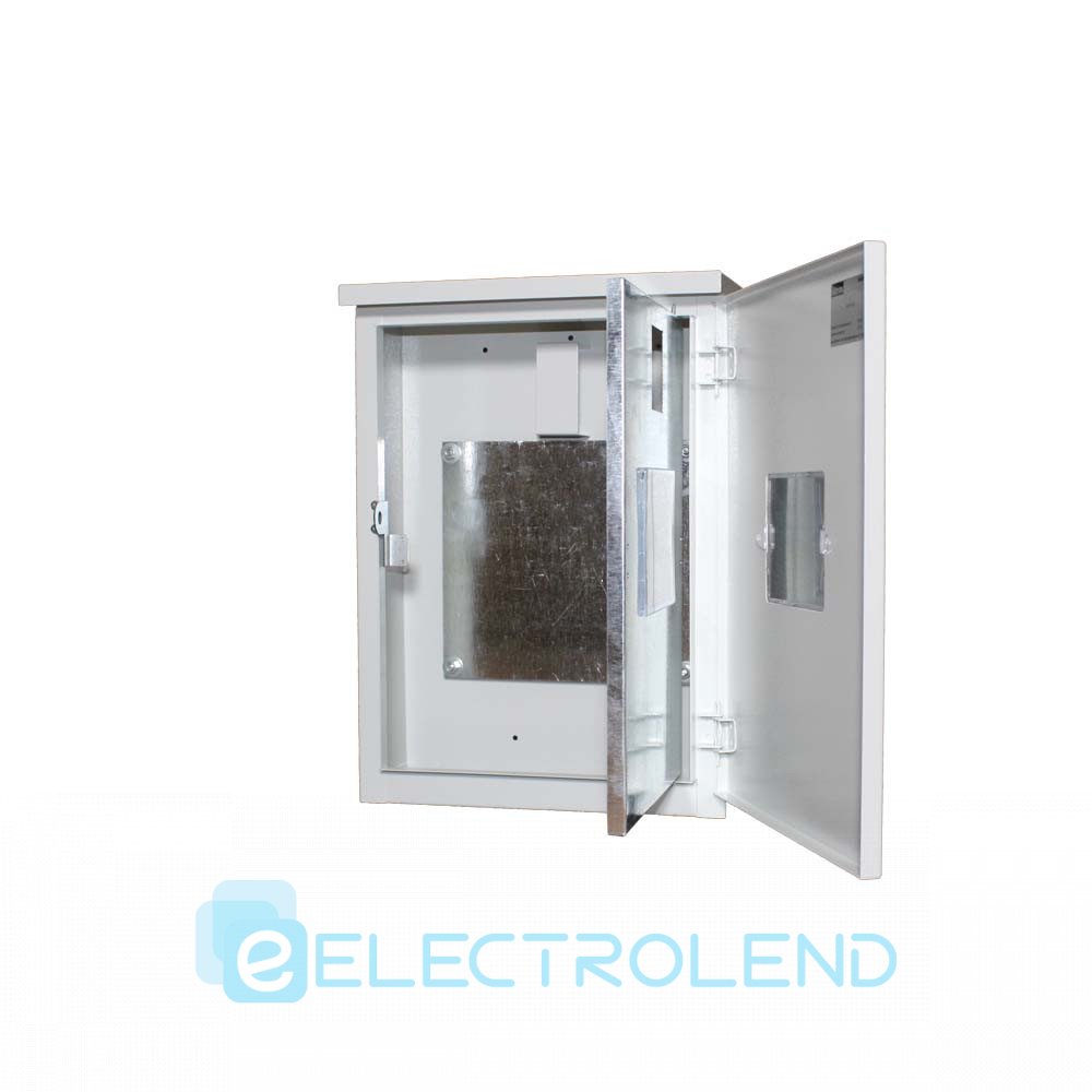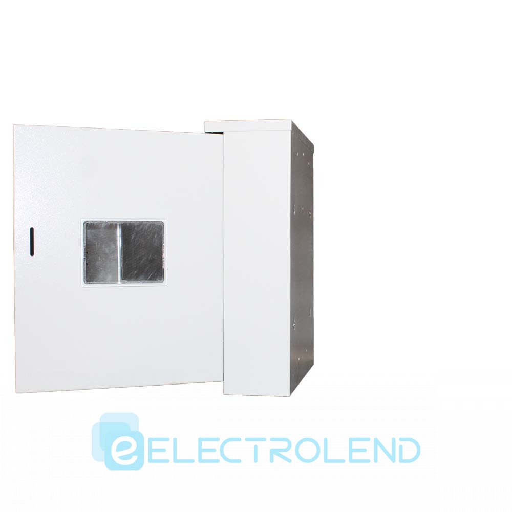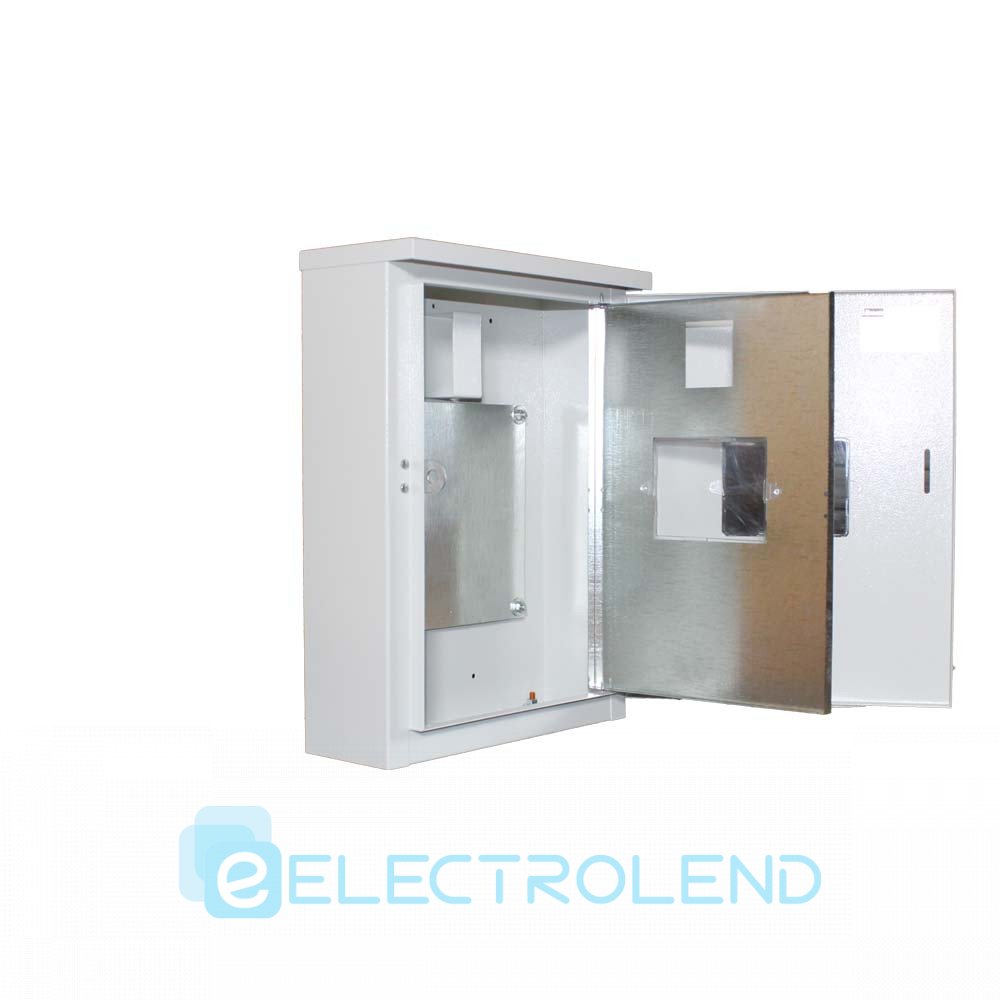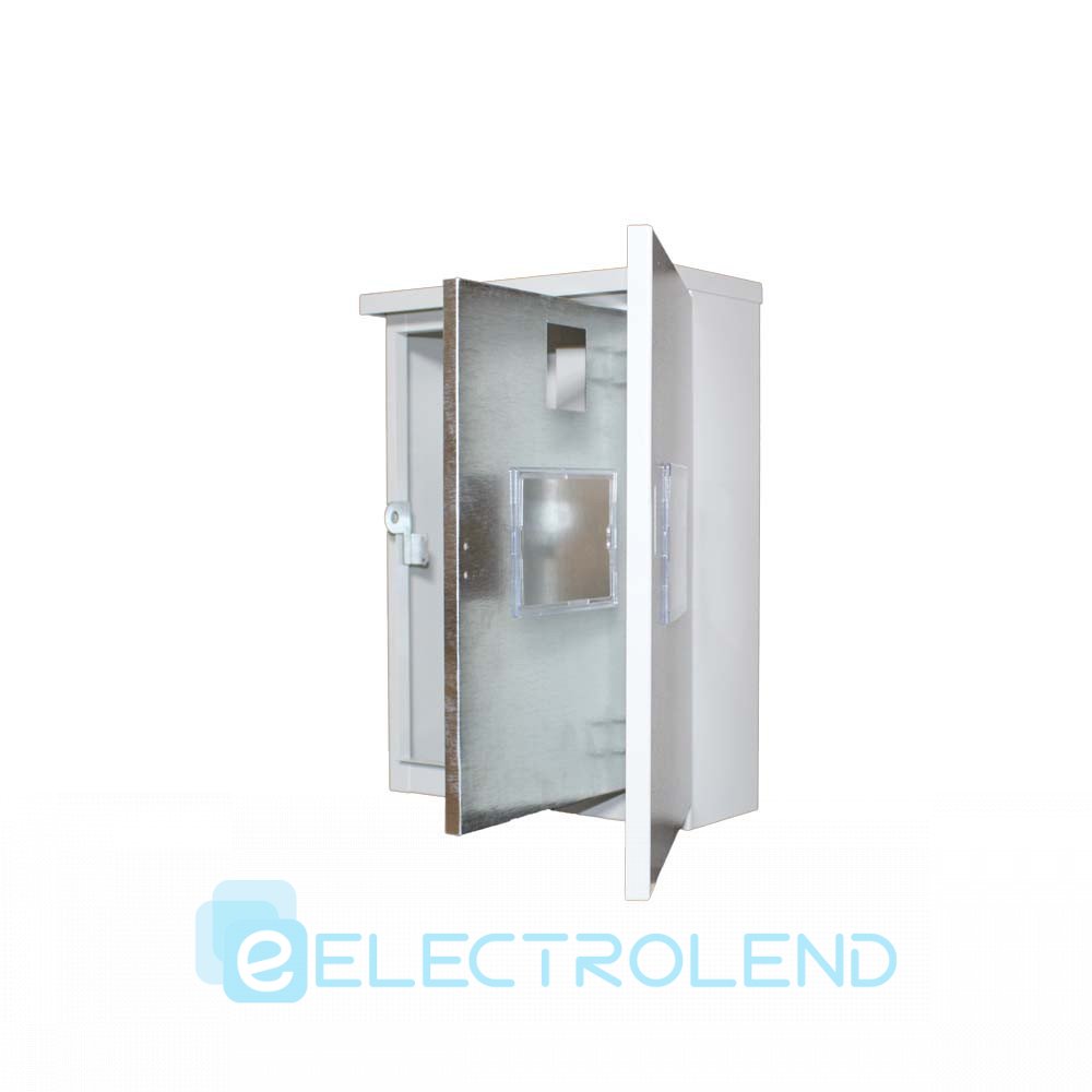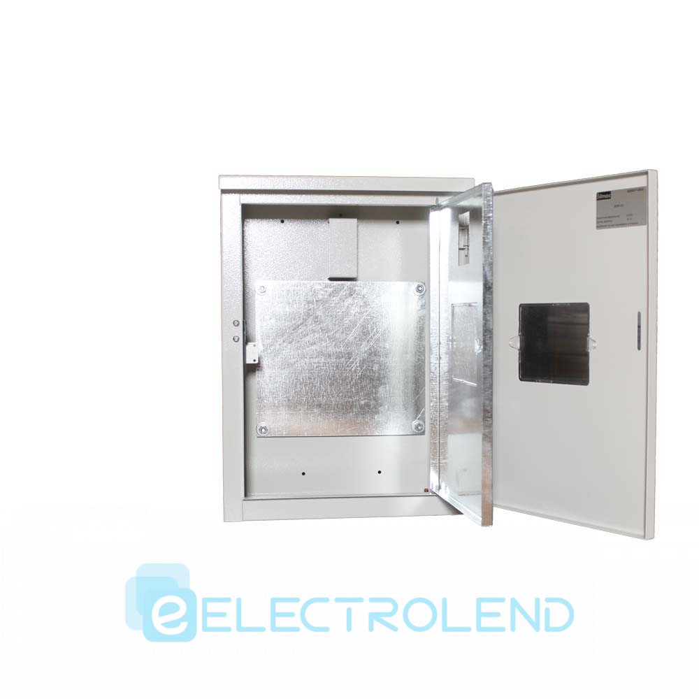 Двудверний, під 1ф або 3ф лічильника, встановлюваний на Din-рейку, місце під автоматичні вимикачі до 3 груп, з віконцем на зовнішніх дверцятах для зняття показів лічильника. На дні виконано два отвори з діаметром 26 мм під сальник діаметром 25 мм.