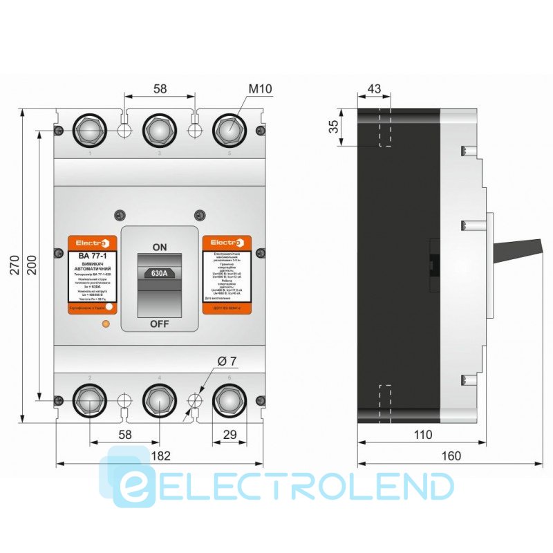 Автоматичний вимикач ВА77-1-630, 3Р, 400А, 10In (8-12In), Icu 50кА, Ics 35кА, 400В, Electro
