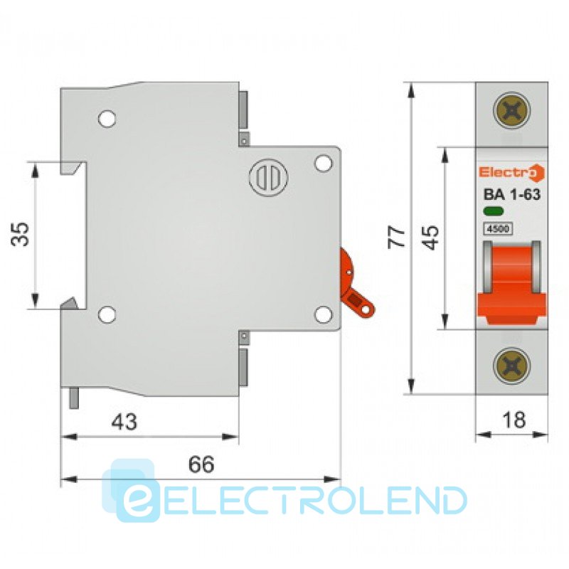 Автоматичний вимикач ВА 1-63 4,5 kA 25A 1P С Electro