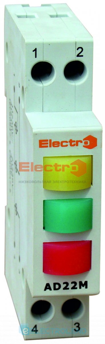 Світлосигнальний LED індикатор фаз AD 22M, на DIN-рейку, червоний-зелений-жовтий, 230В Electro