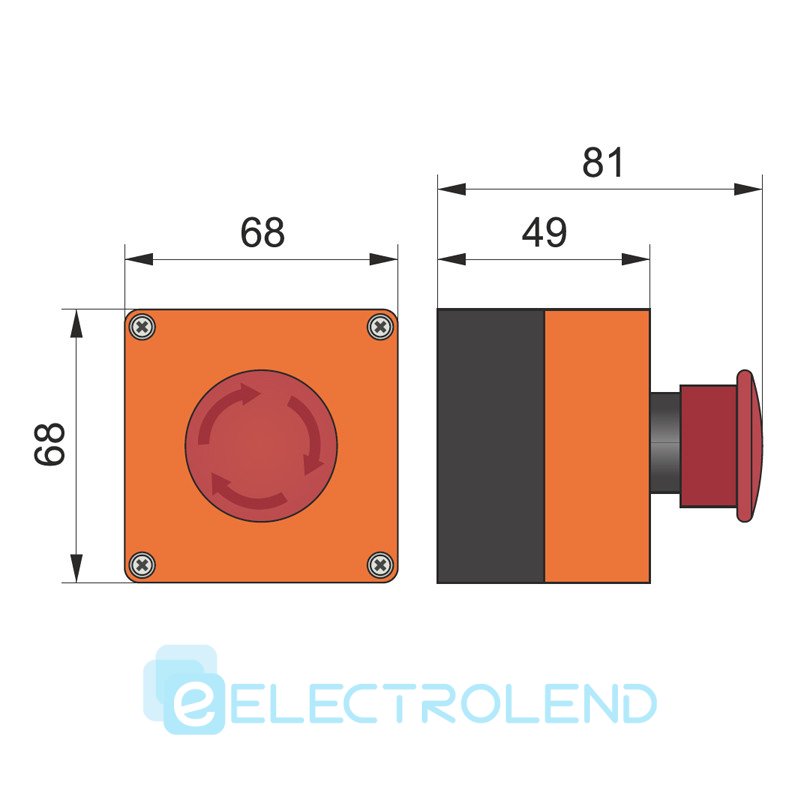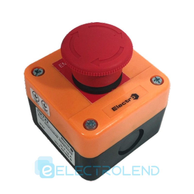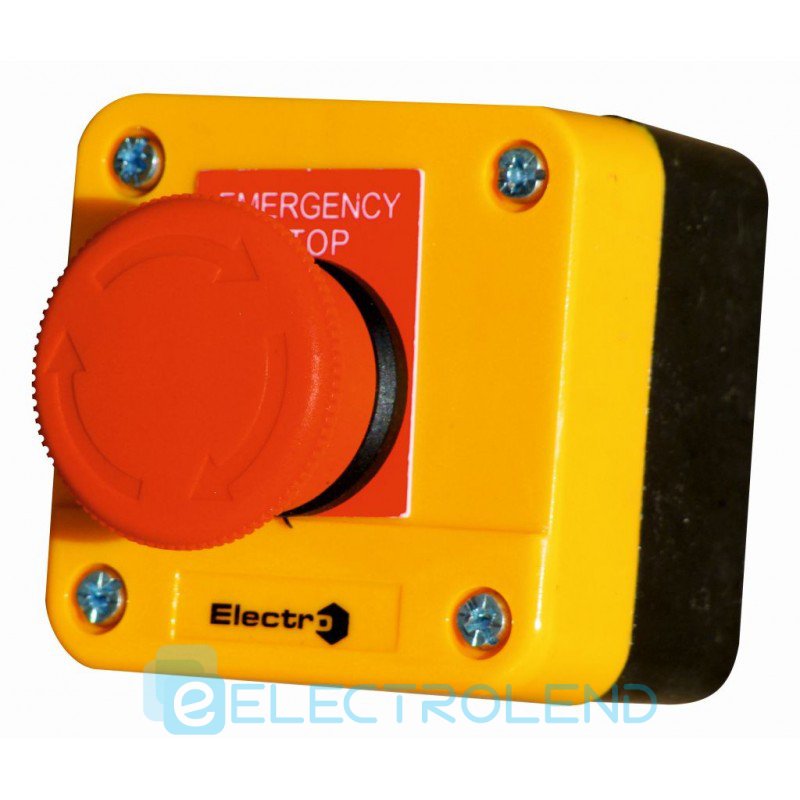 Пост кнопка АВАРІЙНИЙ ПК722, 10A, 230/400B, (1 червоний грибок, корпус - жовтий, NC), з фіксацією, IP54, Electro