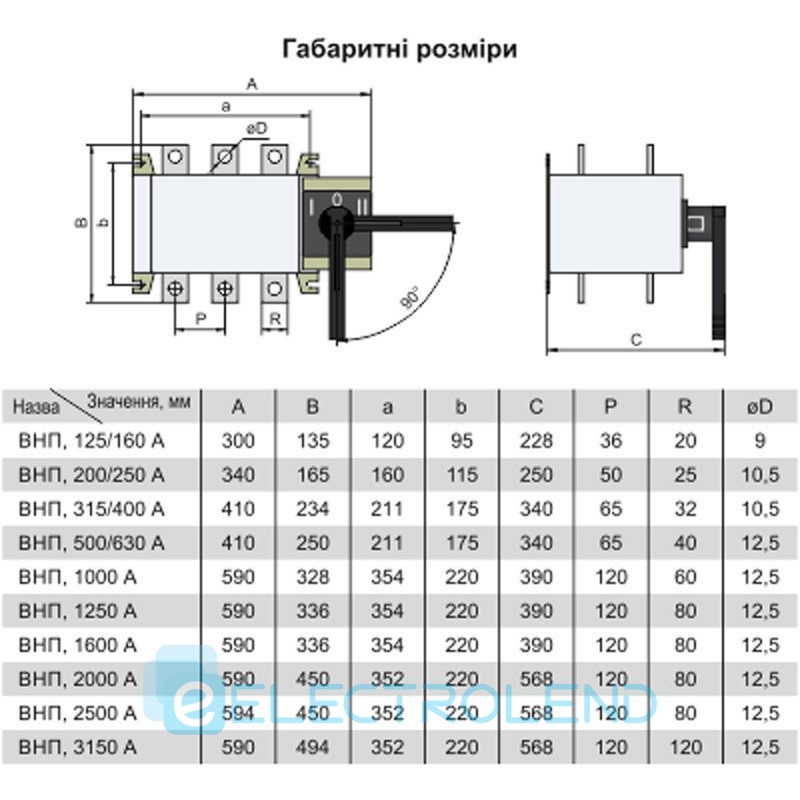 Вимикач-роз'єднувач ВНП перекидний 3Р 315А 12кв 400B/690В Electro
