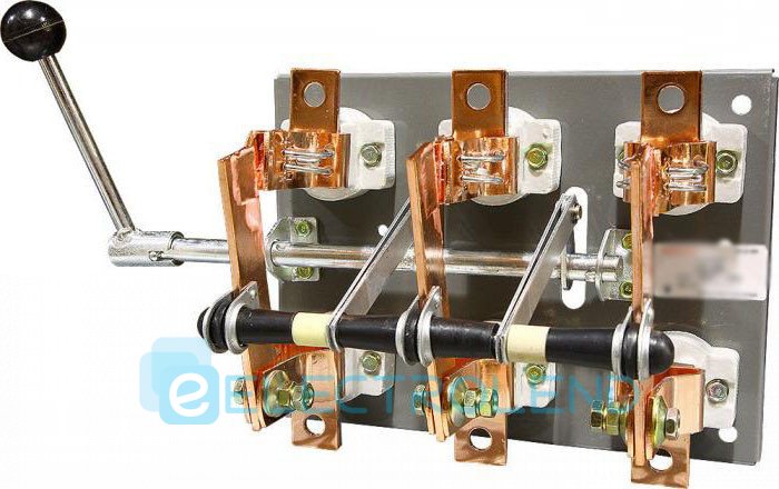Рубильник-разъеденитель РБ – це апарат з трьома полюсами, який повністю залежить від дій оператора. Комутації виробляються під дією ручного приводу, мимовільне включення або відключення виключено. Мають відкрите виконання