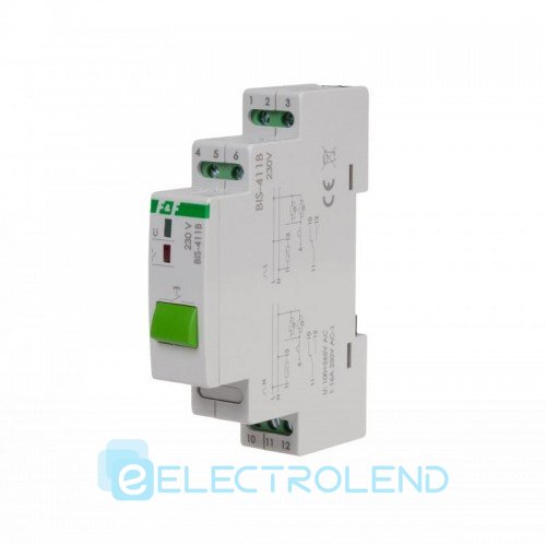 - BIS-411M 230 V – з пам’яттю стану контактів. Після пропадання напруги живлення реле, та повторній появі напруги живлення, контакти реле повернуться до положення в якому вони були до пропадання напруги живлення;