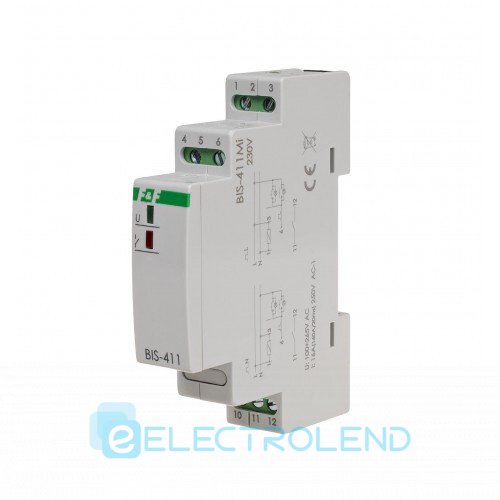 Призначення: електронне імпульсне реле BIS-411 дає можливість вмикати освітлення чи іншого обладнання з кількох різних точок за допомогою з'єднаних паралельно однопозиційних вимикачів ланцюга управління.