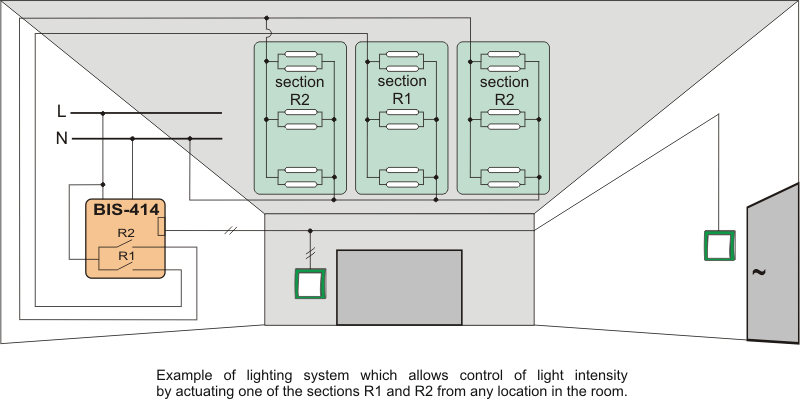Електронні бістабільні імпульсні реле BIS-414 24V дозволяють користувачеві керувати освітленням або іншими пристроями з різних місць за допомогою кнопок управління при паралельному підключенні.