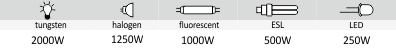 Ці дані є орієнтовними і будуть сильно залежати від конструкції конкретного приймача (що особливо важливо для світлодіодних ламп, енергозберігаючих ламп, електронних трансформаторів і імпульсних блоків живлення), частоти комутації та умов експлуатації.