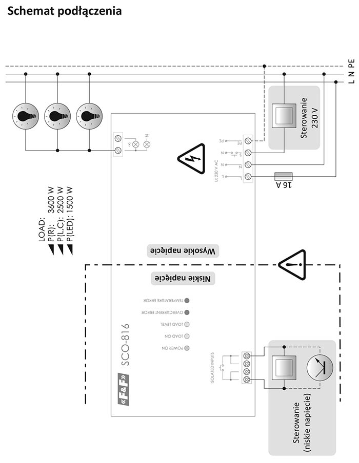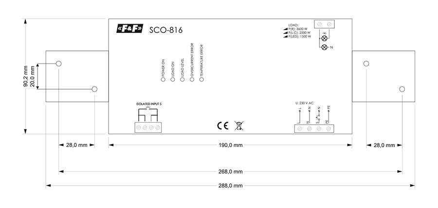 Універсальний диммер SCO-816 призначений для регулювання яскравості диммируемых потужних джерел освітлення, що живляться від мережі змінного струму 230 Ст.