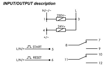 * Знову встановлені значення часового діапазону і режиму роботи стають активними після вимикання та вмикання джерела живлення або після подачі напруги RESET.
