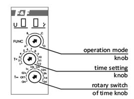 Реле виконує функцію, обрану згідно з установленим періодом режиму. Вибір певного діапазону часу і роботи реле полягає у встановленні відповідної комбінації поворотних кодових перемикачів.