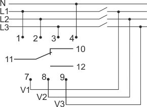 Випадіння фаз принаймні в одній або несиметрія напруги між фазами вище встановленого значення викликає відключення двигуна. Вимкнення двигуна відбувається з затримкою в секунду, що запобігає випадкове відключення двигуна при тимчасовому падінні напруги. Повторне підключення відбудеться автоматично при збільшенні напруги на 5 вище напруги активації (Тобто Значення гістерезису напруги). При виникненні цих порушень привід двигуна в рух неможливий. Світіння червоного діодного світлодіода при одночасному відключенні апарата на тривалий час свідчить про пошкодження контактів контактора. Повторне включення апарату можливо (після ремонту контактів), відключивши від живлення всі три фази (запобіжники), а потім після включення заново.