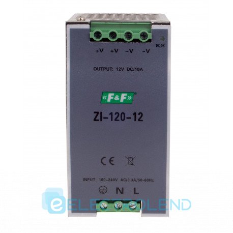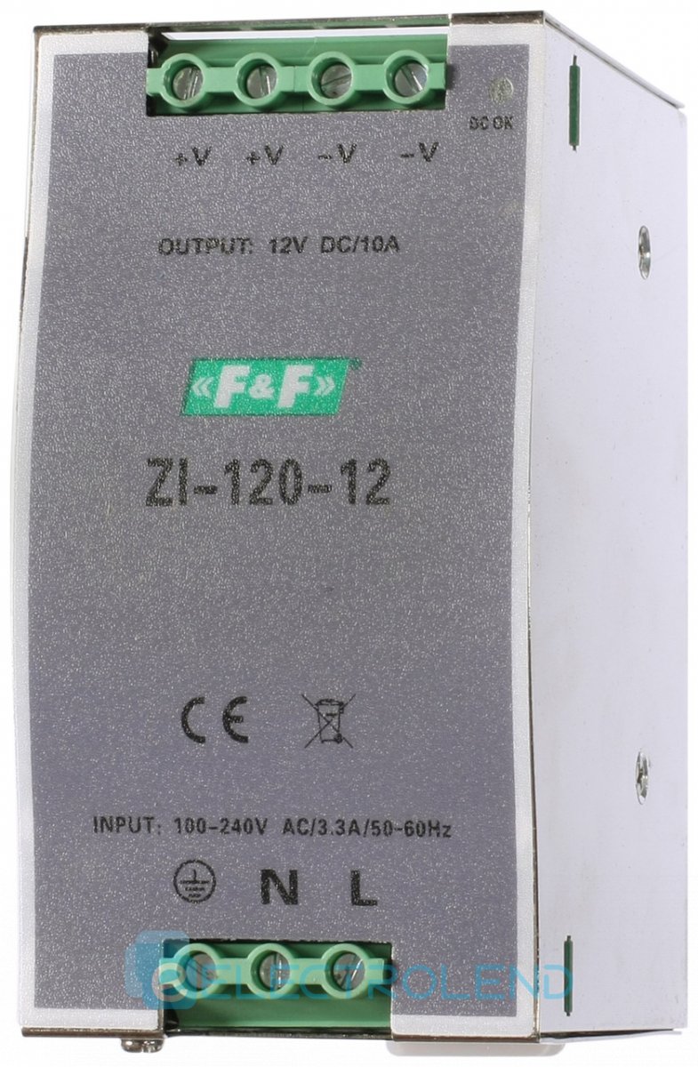 Одноканальний імпульсний стабілізатор ZI-120-12V 100÷240V AC 10A OUT 12V DC 120W F&F