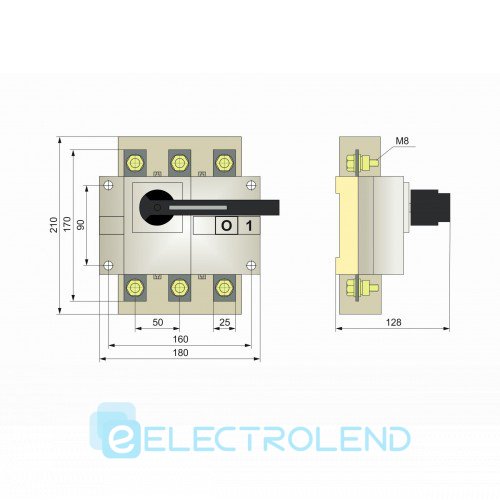 Вимикач навантаження розривний ВН, 3Р, 250А, 8кВ, 400/690B, Electro