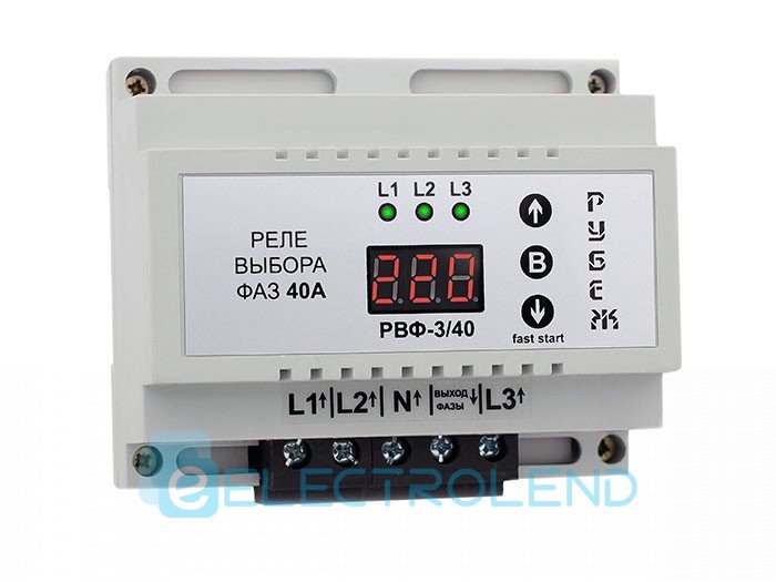Реле вибору фаз РВФ-3/40, в подальшому прилад, призначений для живлення промислової або побутової однофазної навантаження 220В / 50Гц від трифазної чьотирьох мережі 3 × 380 + N, з метою захисту однофазних споживачів від неприпустимих коливань напруги.