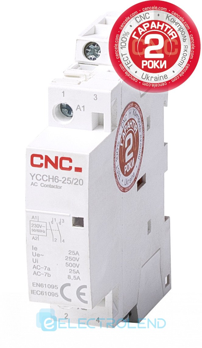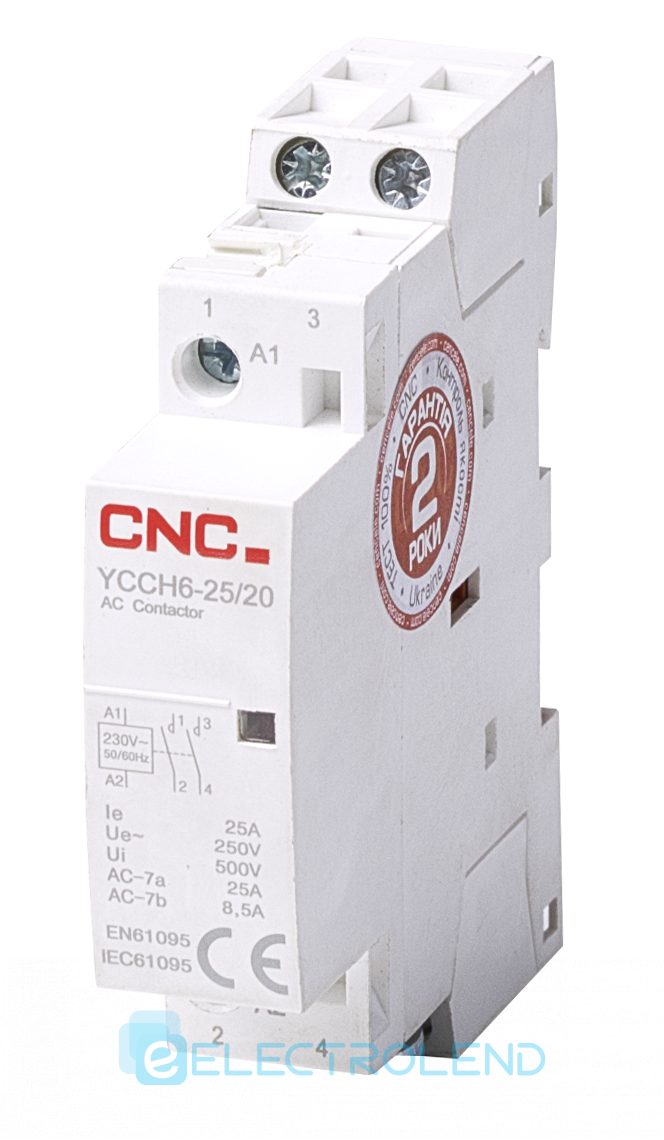 Пускач модульний YCCH6-25, 2P, 220В, 1NO+1NC, 25A, CNC