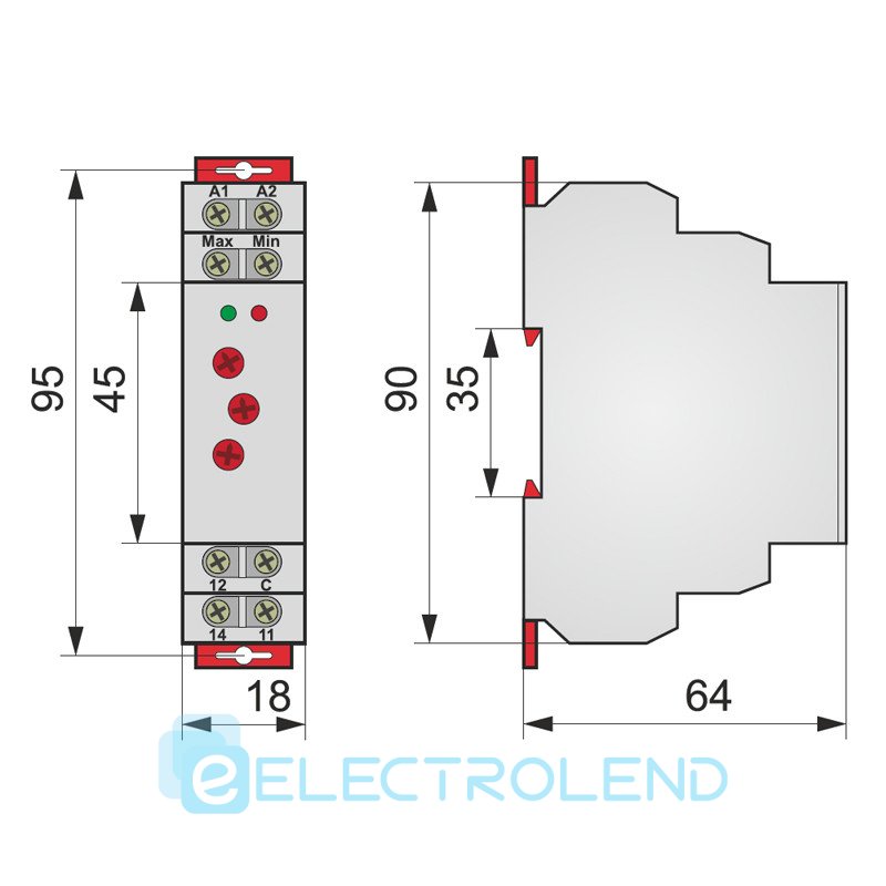 Реле контролю рівня рідини РКН8-02 (ON) ном. напруга. DC24 / АС240 max 10А рівня контролю 1; 2, чувст. 5 - 100кОм