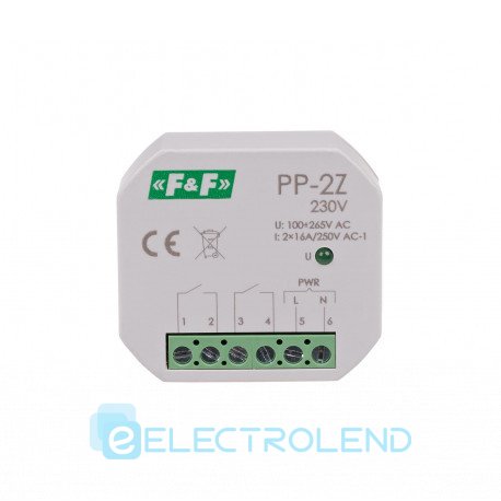 Подача напруги живлення на реле призводить до зміни контактів. Стан перемикання реле позначається зеленим світлодіодом. Після відключення живлення контакт повертається у вихідне положення.