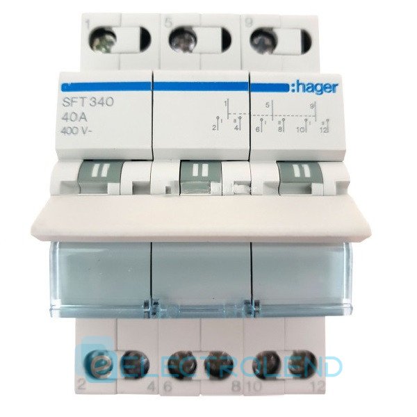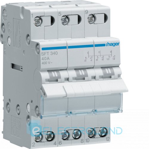 SFT340 Перемикач I-0-II із загальним виходом зверху 3P 40А/400В 3м (введення резервного живлення) Hager