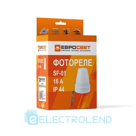 Фотореле ЕВРОСВЕТ SF-01 16A рекомендується застосовувати для повної самостійної роботи системи освітлення, щоб воно вмикалося тільки в темний час доби без необхідності ручного запуску. Його необхідно встановлювати в місцях з постійним доступом світла навколишнього середовища, уникаючи освітлення вашими світильниками. Цей сутінковий датчик вуличного освітлення розміщений в корпусі IP44 і має можливість одночасного підключення до нього великої кількості приладів, максимальною силою струму до 16 ампер.