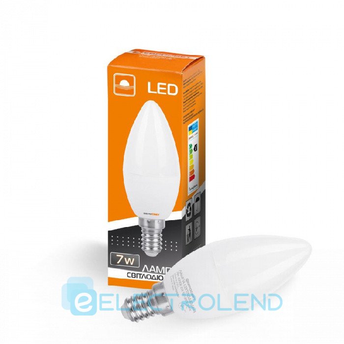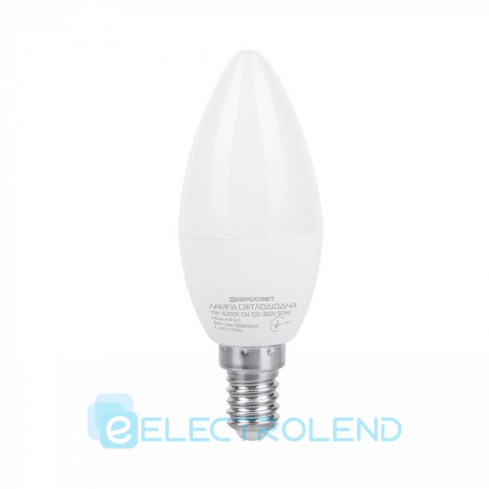 Лампа світлодіодна ЕВРОСВЕТ 7Вт 4200К С-7-4200-14 E14 в формі свічки з невеликим цоколем формату Е14 підійде для сучасних люстр і світильників зі змінною лампою.