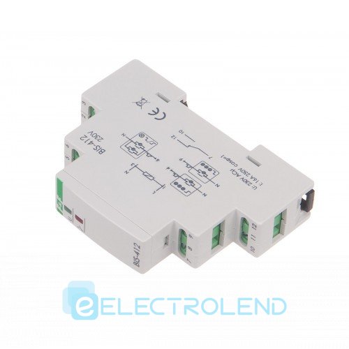 - BIS-412M-230 V – з пам’яттю стану контактів. Після пропадання напруги живлення реле, та повторній появі напруги живлення, контакти реле повернуться до положення в якому вони були до пропадання напруги живлення;