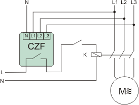 Обрив фази принаймні в одній фазі або дисбаланс напруги між фазами вище фіксованого порогу спрацьовування спричиняє вимикання двигуна. Відключення двигуна відбувається із затримкою, що запобігає випадковому відключенню двигуна при тимчасовому падінні напруги. Повторне підключення відбудеться автоматично при підвищенні напруги на 5 В вище напруги активації (тобто значення гістерезису напруги). При виникненні цих порушень неможливо привести двигун в рух.