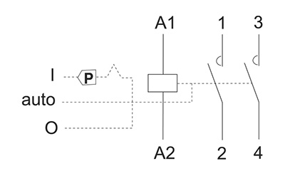 Якщо котушка контактора знеструмлена, то контакти контактора замикаються. Після підключення живлення контактора перемикач автоматично перемикається в положення «AUTO» і з цього моменту
