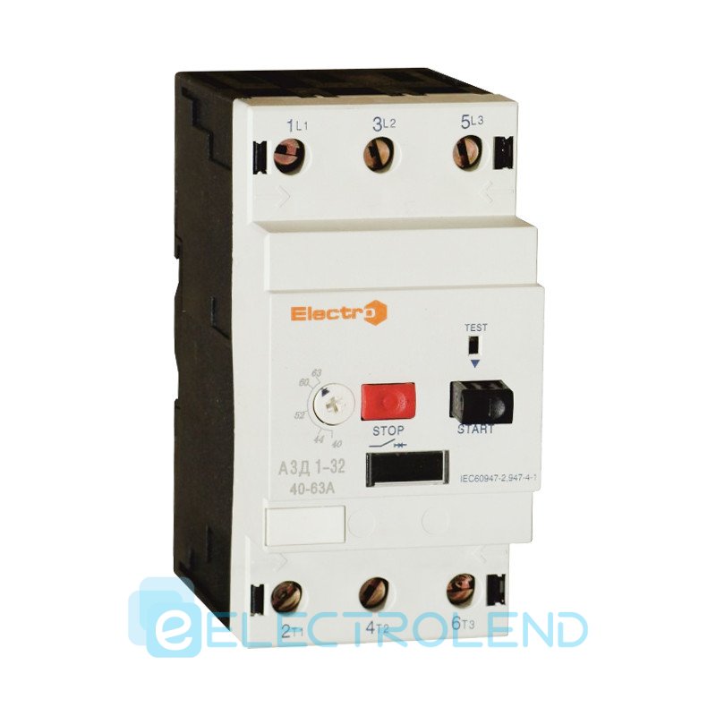 Автоматичний вимикач захисту двигуна АЗД1-80, 380В, 3Р, 63А, В (АС), діапазон налаштування 40-63A Electro