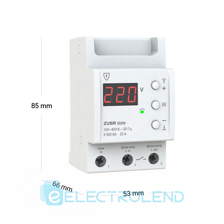 ZUBR D25t Однофазне реле контролю напруги з термозахистом 25А