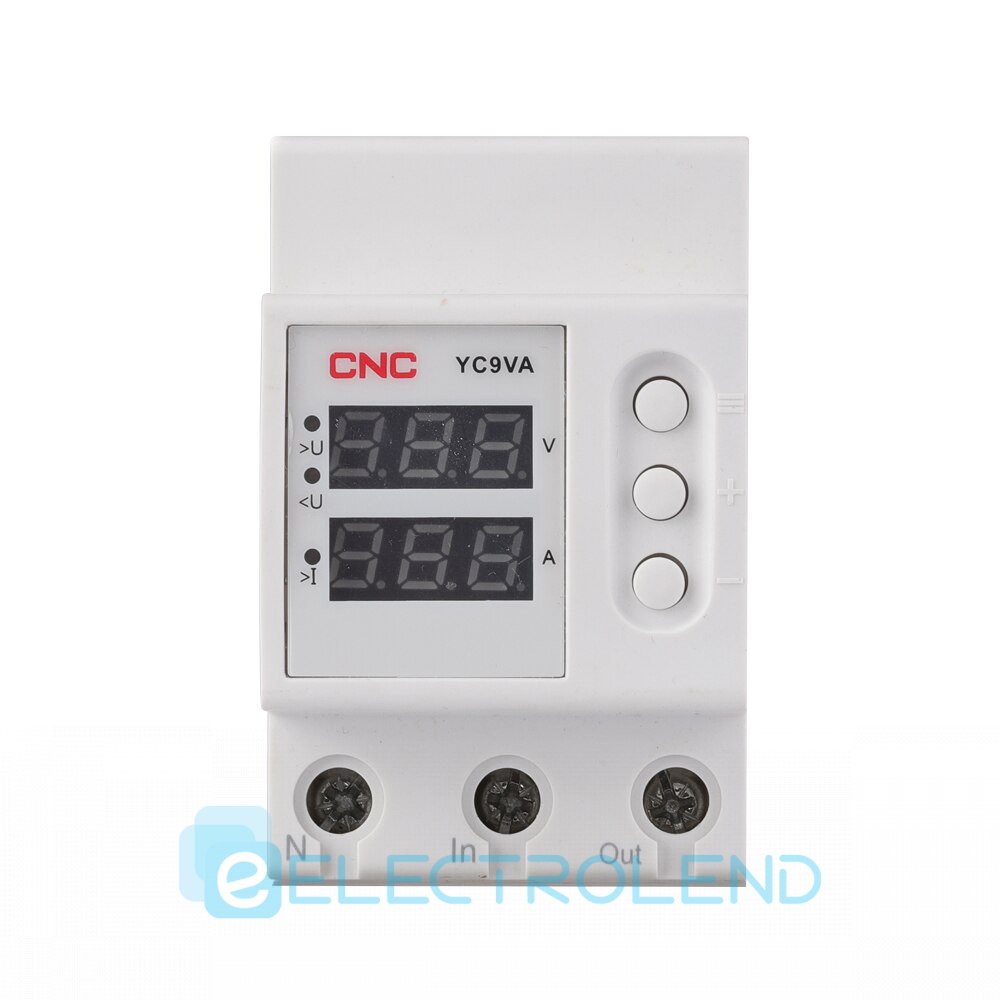 Реле індикації напруги та струму YC9VA — мікропроцесорний пристрій контролю напруги для однофазних мереж змінного струму для захисту електрообладнання від стрибків напруги. Пристрій аналізує мережеву напругу і відображає його поточне значення на цифровому індикаторі. Навантаження перемикається електромагнітним реле. За допомогою кнопки користувач може встановити поточне значення напруги та час затримки. Значення зберігається в енергонезалежній пам'яті. Для з'єднання можна використовувати алюмінієві дроти і мідні дроти.