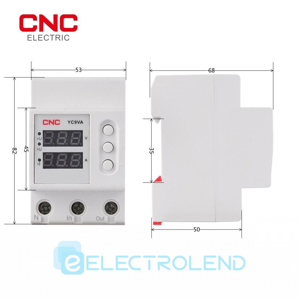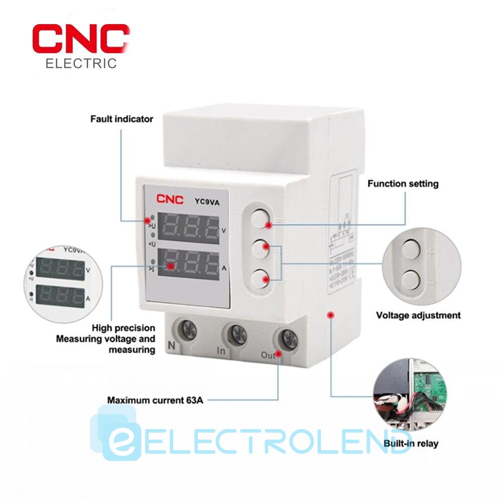 Однофазне реле контролю напруги YC9VA, AC230В, 63А, CNC