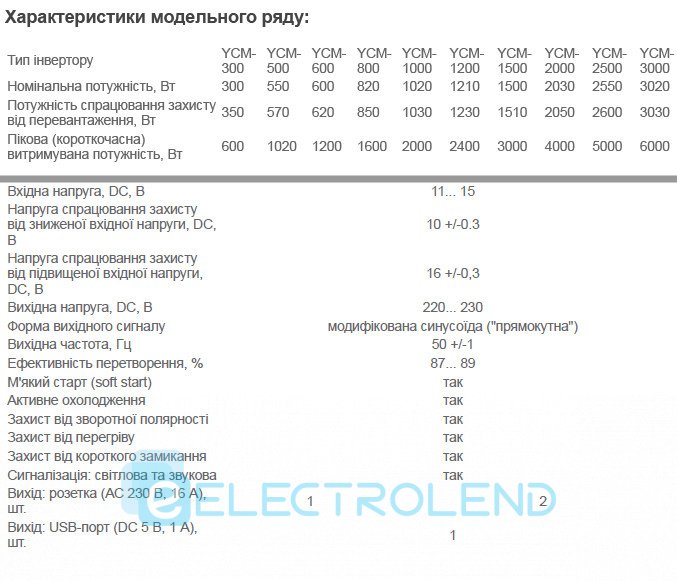акумуляторних батарей напругою 12В DC. Постачаються на номінальну потужність від 300Вт до 3кВт та мають на виході модифіковану