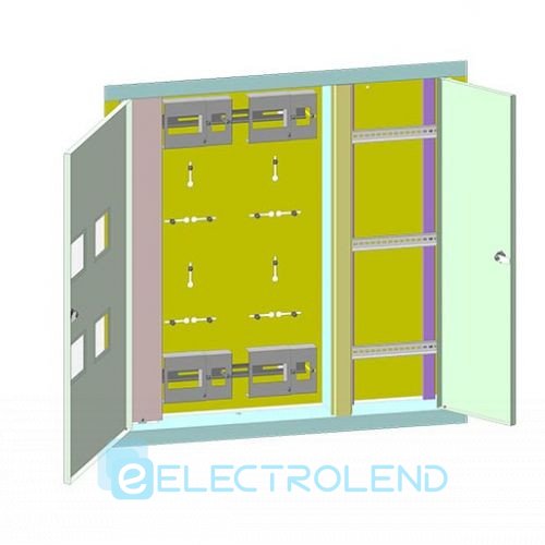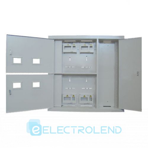 Щиты этажные предназначены для установки в них приборов для учета и распределения электроэнергии напряжением U=220 В и устройств защитного отключения при перегрузках, коротких замыканиях и недопустимых токах утечки на землю в трехфазных сетях напряжением 380/220В частотой до 50 Гц с глухозаземленной нейтралью и нулевым защитным проводником, а также слаботочных приборов в специальном отсеке. Щит изготовлен для 4-х счетчиков. Конструктивно щит выполнен в виде шкафа с тремя дверцами, закрывающимися на ключ, что позволяет ограничить доступ посторонних лиц к установленным приборам. На дверцах предусмотрены смотровые окна для снятия показаний с приборов учета. Внутри предусмотрены: кронштейны для установки 4-х однофазных электросчетчиков, места для установки вводных устройств защитного отключения (УЗО) или вводных автоматических выключателей (ВАВ) с пломбируемыми панелями, места для распределительных автоматических выключателей (АВ) и монтажные панели для прочих целей. Автоматические выключатели и устройства защитного отключения конструктивно должны быть предназначены для крепления на DIN рейке шириной 35мм.
