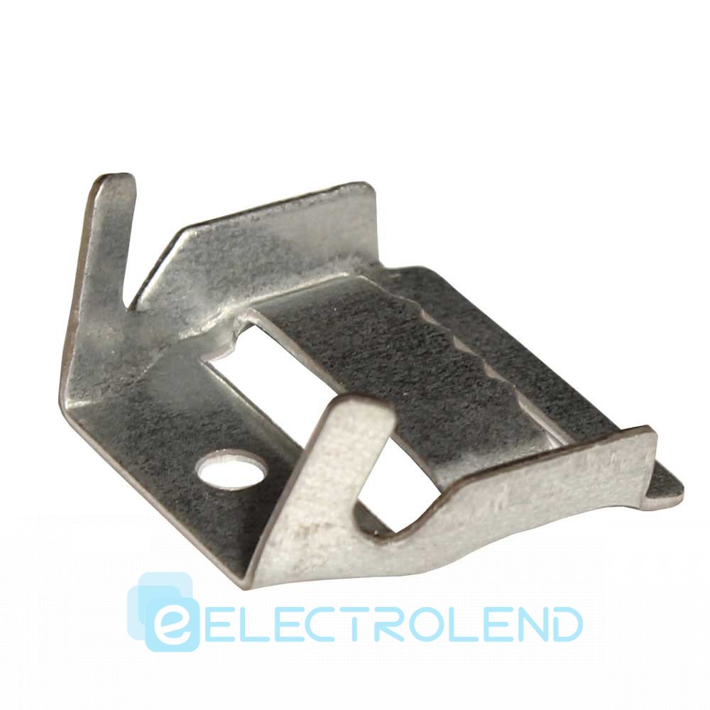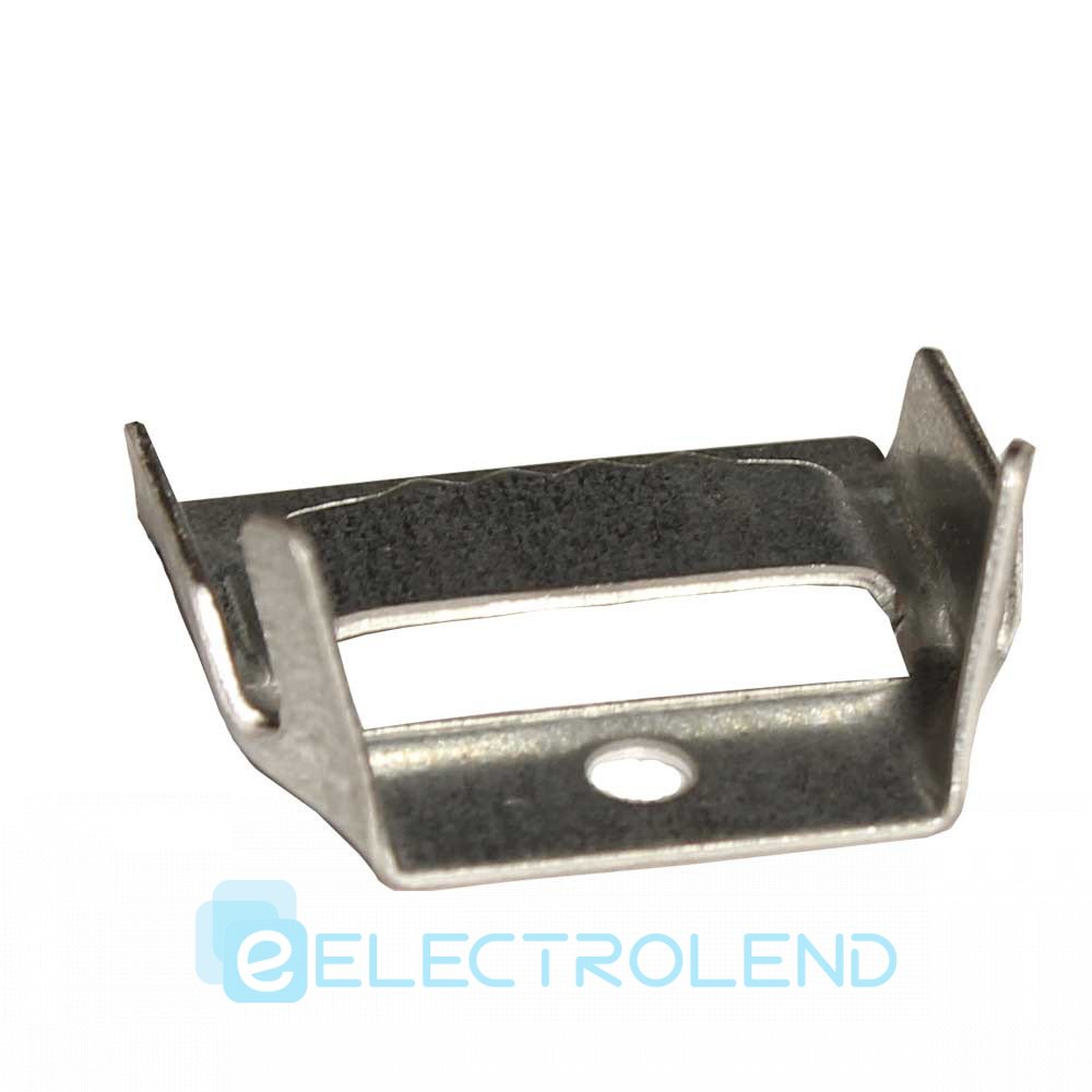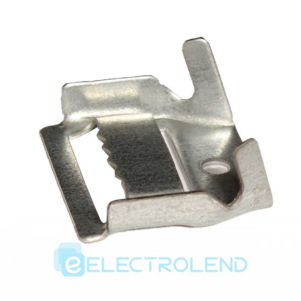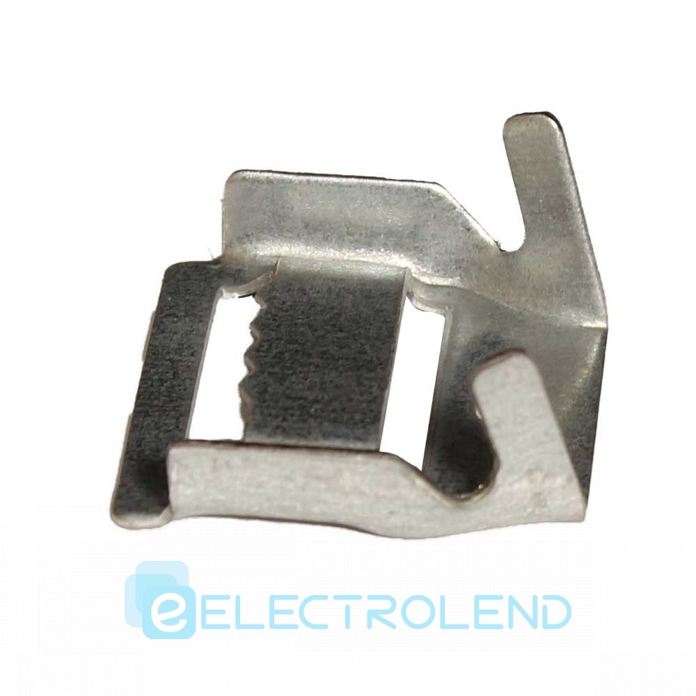 Скрепа використовується для фіксації бандажної стрічки. Виготовлена з харчової нержавіючої сталі AISI 304.