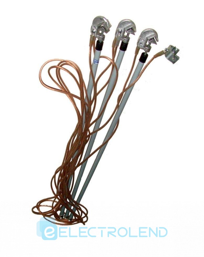 ЗПЛ-220-3/3-25 - заземлення переносне лінійне трифазне. Заземлення переносне для повітряних ліній ЗПЛ-220 призначене для захисту працюючих на відключених ділянках повітряних ліній напругою від 0,4 кВ до 220 кВ у разі помилкової подачі напруги на цю ділянку або появи на ній наведеної напруги. , 50, 70, 95 мм2 в прозорій пластиковій оболонці з заземлюючим спуском і без заземлювального спуску, з незнімними штангами Кріплення дроту до затискачів здійснюється за допомогою луджених мідних наконечників або гільз Для виключення зламу дроту він додатково укріплений захисною поліетиленовою трубкою2 може комплектуватися заземлюючими спусками перерізом 35, 50, 70 та 95 кв. мм, може бути виконаним в однофазному виконанні або з додатковою кількістю фаз, а також з подовженими штангами (не менше встановленої стандартом довжини штанги на даний клас напруги), штанги можуть покриватися порошковою фарбою і трубкою, що термоусаджується Фазні затискачі можуть бути обладнані карданами для зручності роботи в трьох площинах
