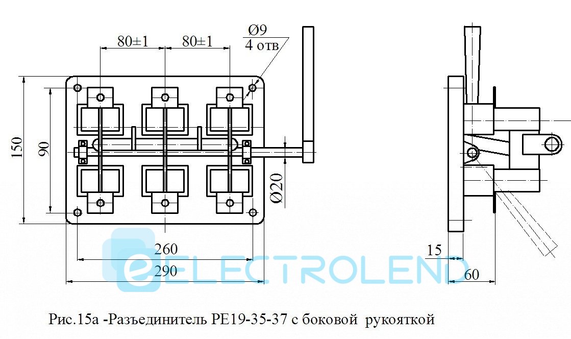 Роз'єднувач РЄ 19-35-311200 250А 3Р лівий з боковою рукояткою