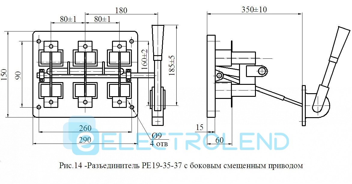 Роз'єднувач РЄ 19-37-311400 400А 3Р лівий зі зміщеним приводом
