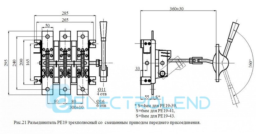 Широкий вибір виконань роз'єднувачів РЕ19 : по номінальному струму, виду ручного приводу, кількості полюсів, розташуванню контактних виведень. Виготовлятися роз'єднувачі можуть на ізоляційних секціях або на ізоляційній плиті. |