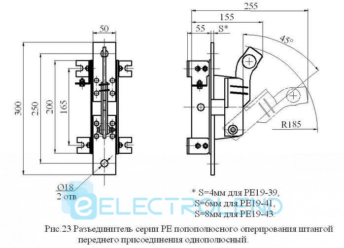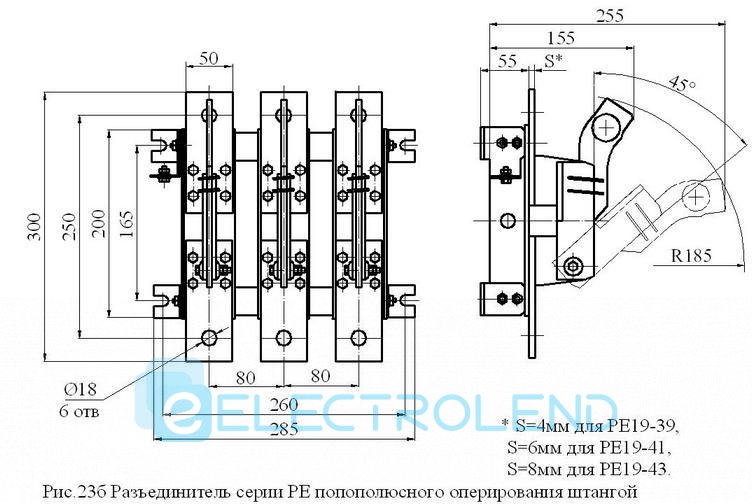Широкий вибір виконань роз'єднувачів РЕ19 : по номінальному струму, виду ручного приводу, кількості полюсів, розташуванню контактних виведень. Виготовлятися роз'єднувачі можуть на ізоляційних секціях або на ізоляційній плиті. |