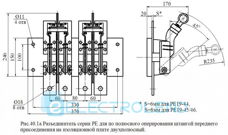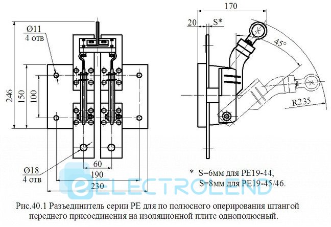 Широкий вибір виконань роз'єднувачів РЕ19 : по номінальному струму, виду ручного приводу, кількості полюсів, розташуванню контактних виведень. Виготовлятися роз'єднувачі можуть на ізоляційних секціях або на ізоляційній плиті. |