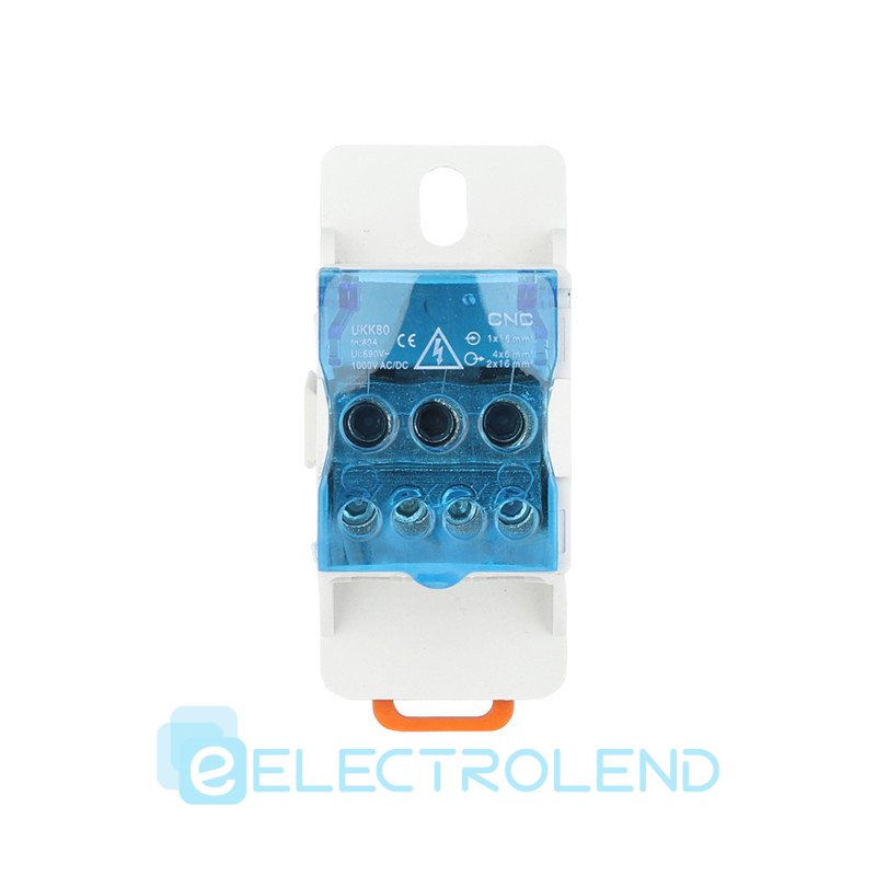 Блок розподільчий на DIN-рейку FTUKK80, 80А, 690В, 31х70х45,5мм, 1х6-16мм2 / 4х2,5-6мм2 / 2х2,5-16мм2, CNC