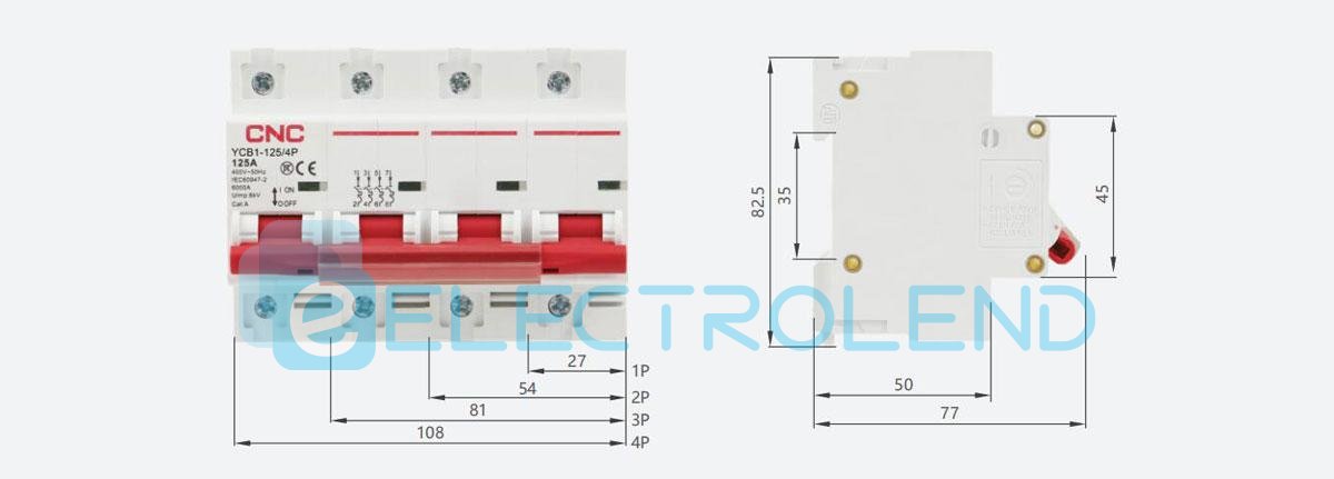 Модульний автоматичний вимикач YCB1-125, 1Р 100А, D, 6кА, CNC