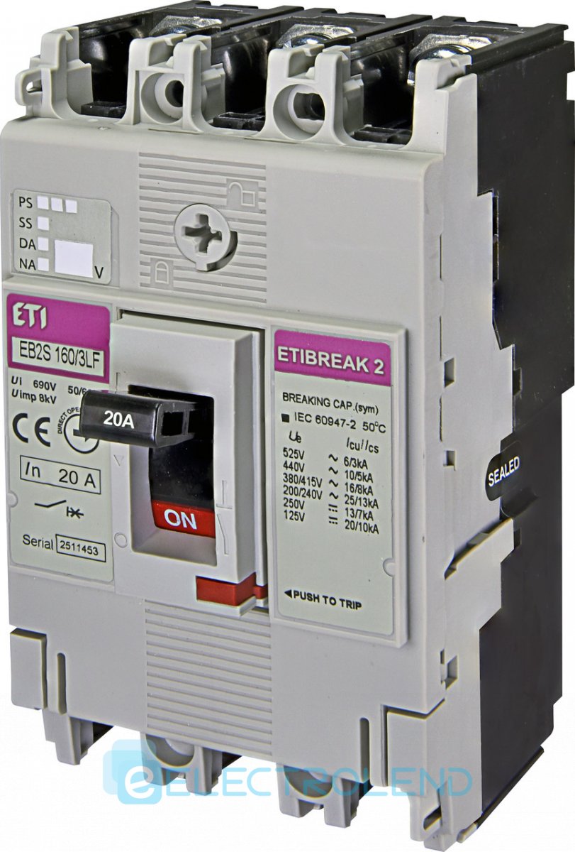 Автоматичний вимикач ETI 4671802 EB2S 160/3LF 20А 3P (16kA фіксовані налаштування)