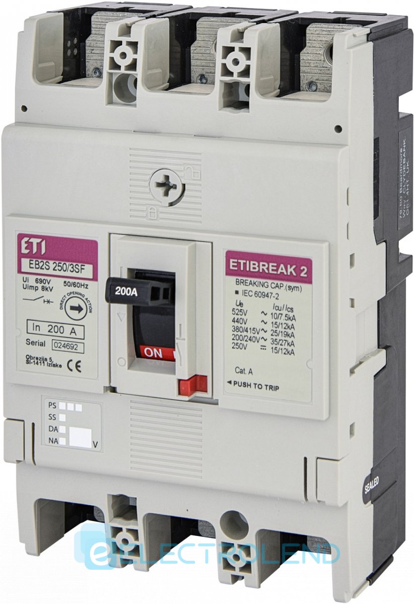 Автоматичний вимикач ETI 4671838 EB2S 250/3LF 200А 3P (25kA фіксовані налаштування)