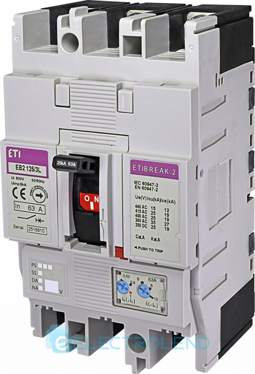 Автоматичний вимикач ETI 4671024 EB2 125/3L 63А 3Р 25kA